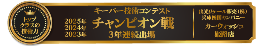 カーウォッシュ姫路には、キーパーコーティング技術1級資格者3名が在席しております。