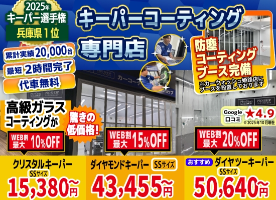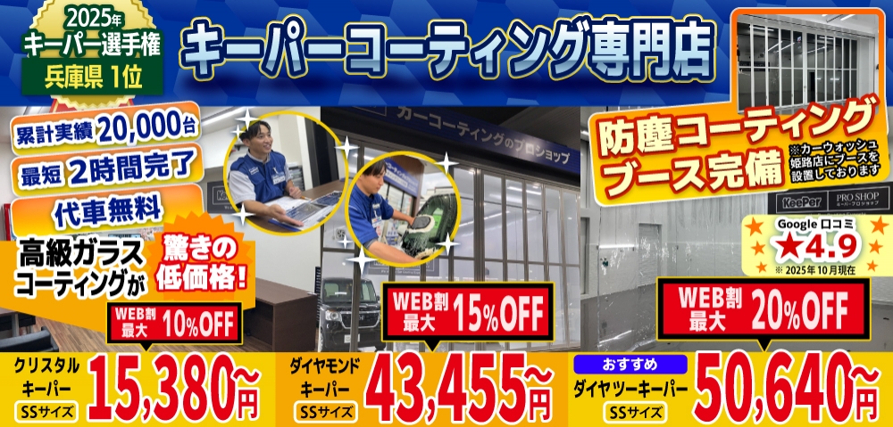 私達キーパープロショップは、姫路・たつの地域のカーコーティング専門店として、日本ダントツのカーコーティングブランド、キーパーの認定店です!